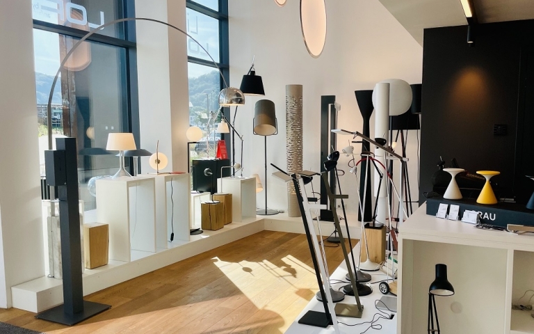 Gemütliche Wohnraumleuchten, tolle Aussenleuchten, anspruchsvolle Designerleuchten - die führenden europäischen Leuchtenmarken finden Sie bei uns. Unsere Ausstellung zeigt Ihnen aktuelle Leuchten aus allen Bereichen. Wir beraten Sie gerne (auch bei Ihnen zuhause) und unterstützen Sie bei der Wahl Ihrer Leuchte und der energiesparenden Leuchtmittel. Wir sind Ihr Partner - von der Beratung bis zur Montage - alles aus einer Hand.